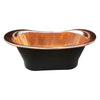 This copper tub features a dual-tone with a polished copper interior and a contrasting black exterior finish. This premium 16-gauge pure copper bath manufactured for bathing luxury has the following highlights: